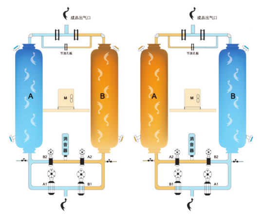 零氣耗鼓風熱吸附式干燥機,采用時新的鼓風加熱方式實現無氣耗,滿足客戶的需求,使空氣露點穩定。